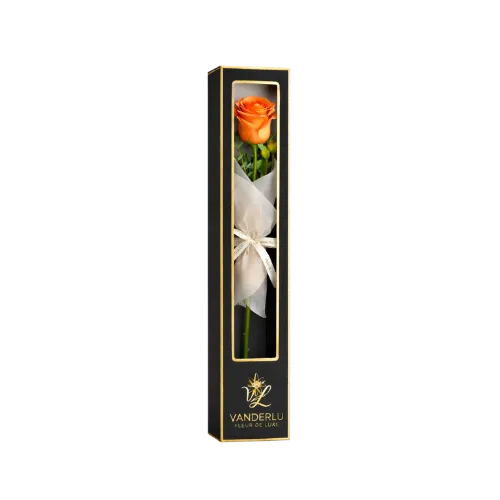 Rose éternelle Large Orange en boîte de luxe. Cadeau original et élégant en Suisse.