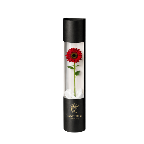 Tournesol éternel Petite Rouge en boîte premium. Cadeau passionné et lumineux à Lausanne.
